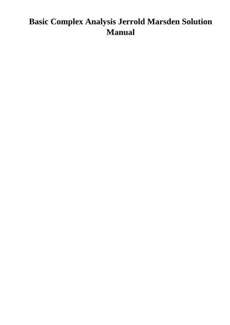 Download online Solution Manual Basic Complex Analysis Marsden Hardcover Open Library